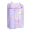 Loveinside Purple Gift Bag with Tissue Paper for Baby Boy Baptisms, Christenings, First Communions Religious Occasion- Cross Design, 25.4x12.7x33cm, 1 Pcs - Pink with Cross Design