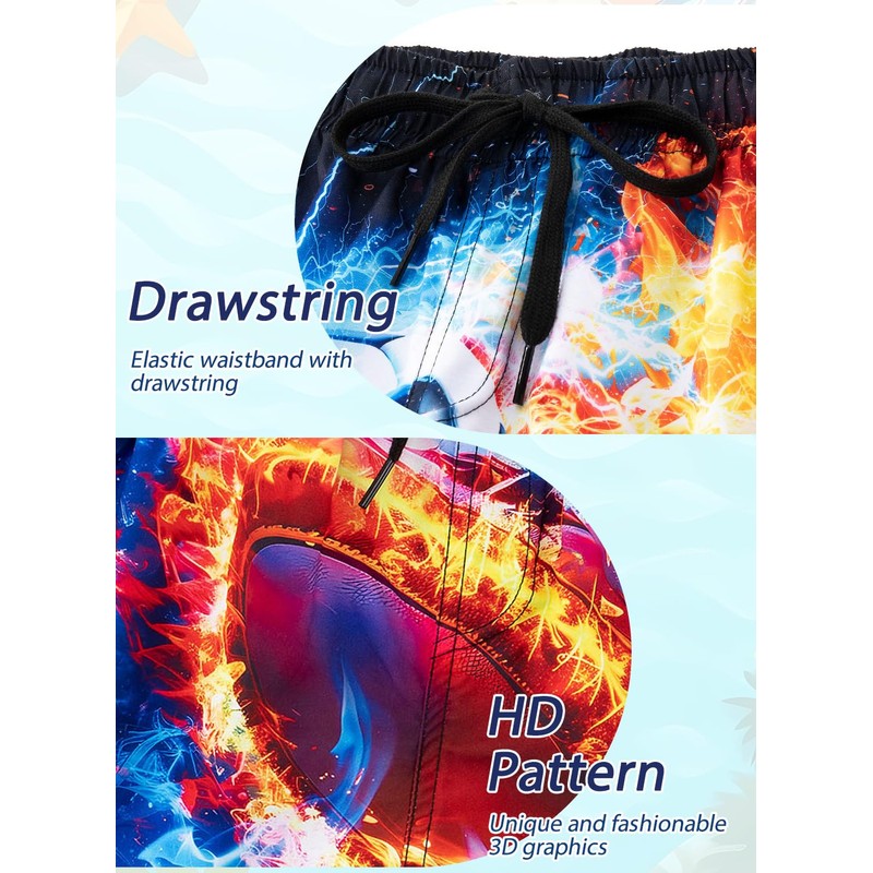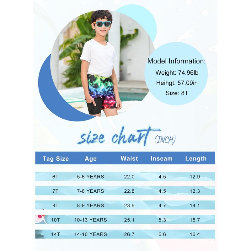 - 2 in 1 Boys Boxer Brief Liner Swim Trunks: The boys swim trunks have a Built-in compression lining protects your skin from scratch and prevents from sticking to your skin when the shorts are soaked. while provides better breathability and elasticity