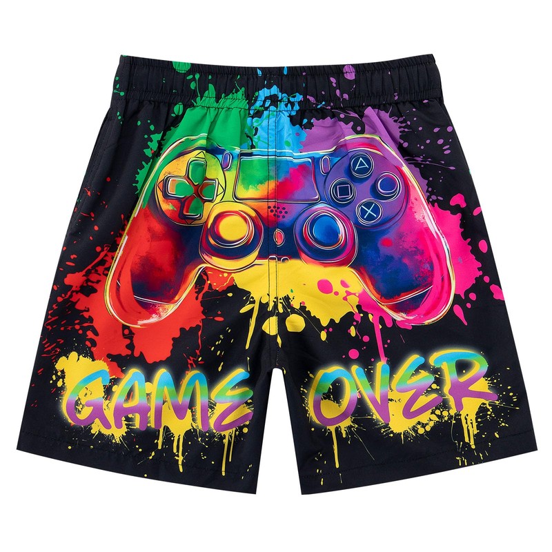 Lovekider Boys Swim Trunks with Compression Liner Neon Game Consoles Beach Bathing Suits Boxer Brief Liner Swimsuit Swimwear Shorts
