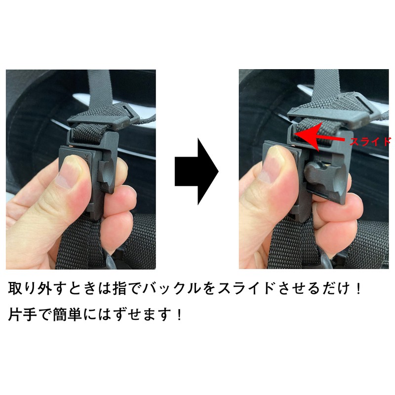 - (Adopts a one-touch detachable magnetic buckle) It attaches with magnets, so you can quickly and easily attach and remove chin strap with one hand. Simply place the buckle close to each other for installation. When it is fastened it will stay secure even if you pull the chin strap. Easy to remove by sliding the buckles together to remove Unlike regular embedded buckles, you don't have to worry about improper installation or pinching your skin