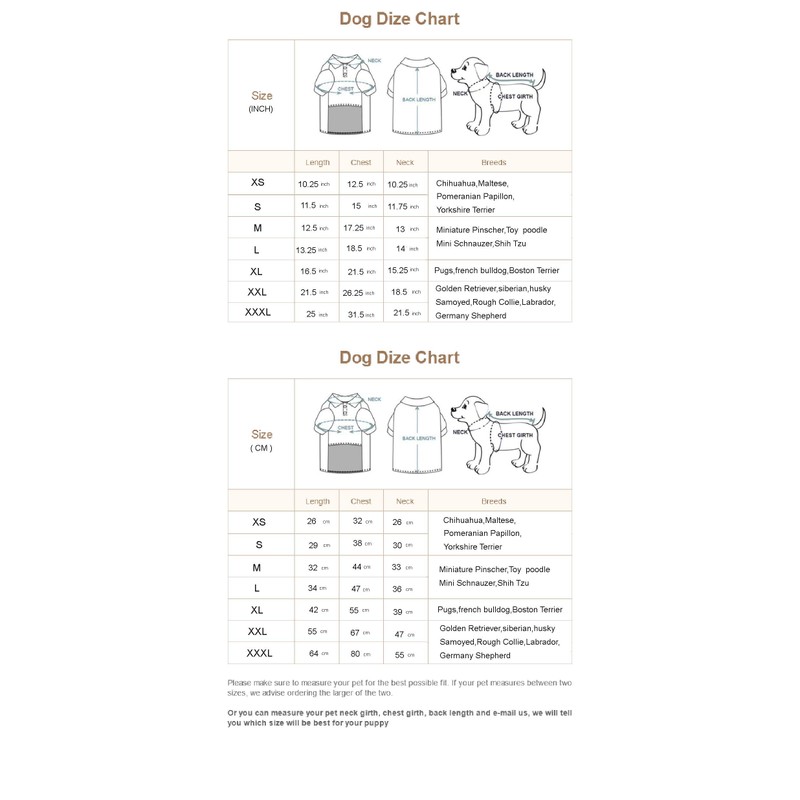 - 7 SIZES CAN BE CHOSEN - Size ranges from XS - XXXL, suitable for small/medium/large dogs. Measure your pet's neck girth ,chest girth and back length and choose the correct size according to our size information in the description before you have the order.