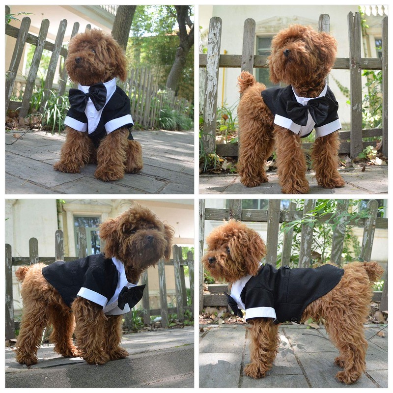 - Well tailored and fully lined formal tuxedo, Soft Cotton Blend material, keep your puppy more comfortable.