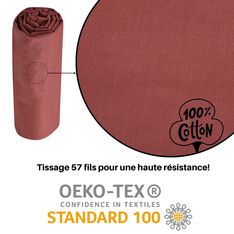 Lovely Casa - Fitted sheet - Size 90 x 190 cm - Large 30 cm - 100% Oeko-Tex Certified Cotton - Colour Grenache - Model Eden - Bed linen for home - Soft and comfortable for a cosy nest