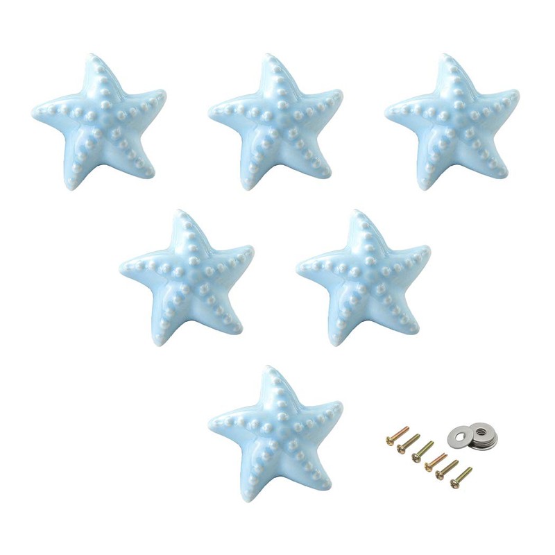 Lovely Ceramic Knob Starfish Shape for Kid's Room Furniture Cabinet Handles Ceramic Drawer Pull Kitchen Drawer Pulls 6 Pack