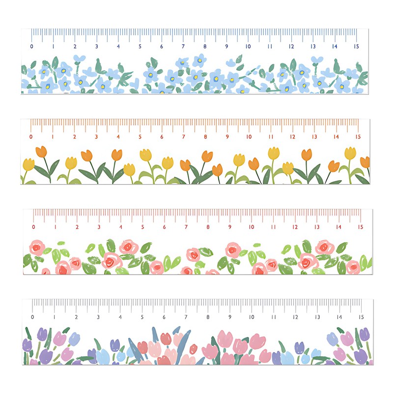 This 4-piece set of lovely flower straight rulers combines aesthetic appeal with practical function. Each ruler 15cm is crafted from clear acrylic with a charming floral design that enhances any workspace. Designed to meet needs in school, office, or creative drafting, these rulers offer precise centimeter measurements and smooth edges.