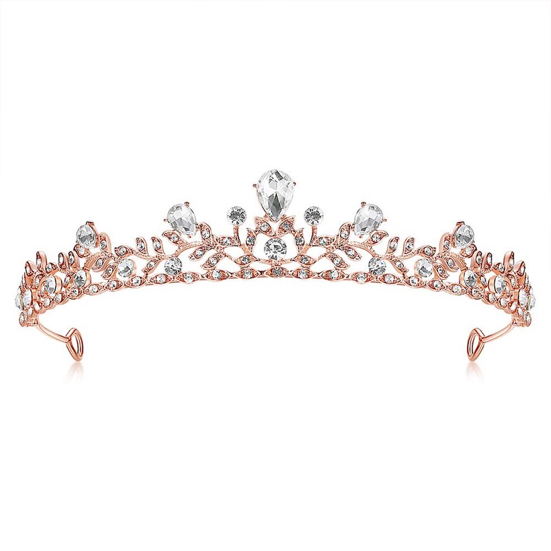 - Rose gold zinc alloy tiara headpieces, studded with clear crystals