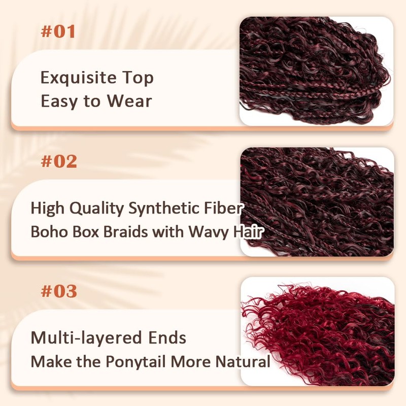 - Material: Esta coleta con cordón es un nuevo diseño de trenzas bohemias con cabello ondulado. Está hecha de un material ligero, suave y resistente al calor, lo que la hace ligera, suave y de aspecto natural. Tan cómoda que la puedo usar a diario.