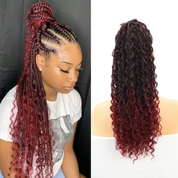Lovenea Coleta Con Cordón Para Mujer, Trenzas Bohemias De 45 Cm Con Cabello Largo Ondulado, Extensión De Cola De Caballo Con Clip, Extensiones De Cabello Sintético Para Uso Diario (T1B/Bug#, 45 Cm)