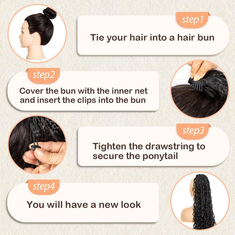 - Fácil de usar: Se coloca de forma rápida y sencilla, tan rápido como si te hicieras un moño. Con solo un tirón y un pliegue, se fija de forma segura y se mantiene tan natural como el cabello real, pero aún mejor. Es la mejor opción para principiantes. Olvídate de secarte el cabello con secador y peinarlo, simplemente sujeta y listo, ahorrando tiempo y dinero.