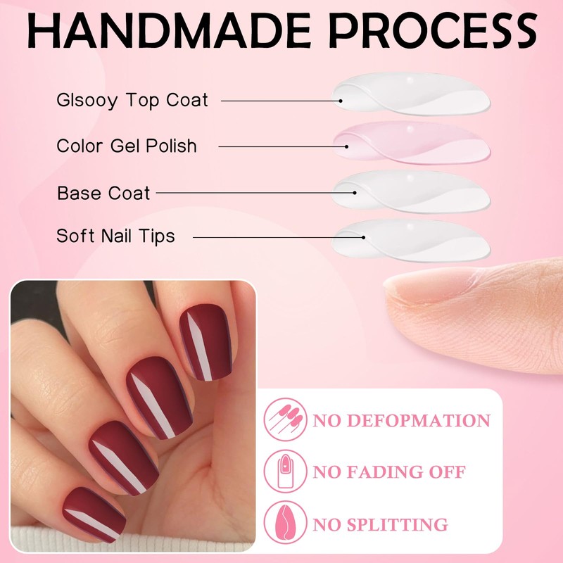 LoveOurHome 288pc Coffin Press on Nails Short Fake Nails with Glue Tabs, Burgundy Glue on Nails Press on Nails Women Acrylic Nails XS Coffin Fake Nails Short False Nails Girls Kids Red Fingernails