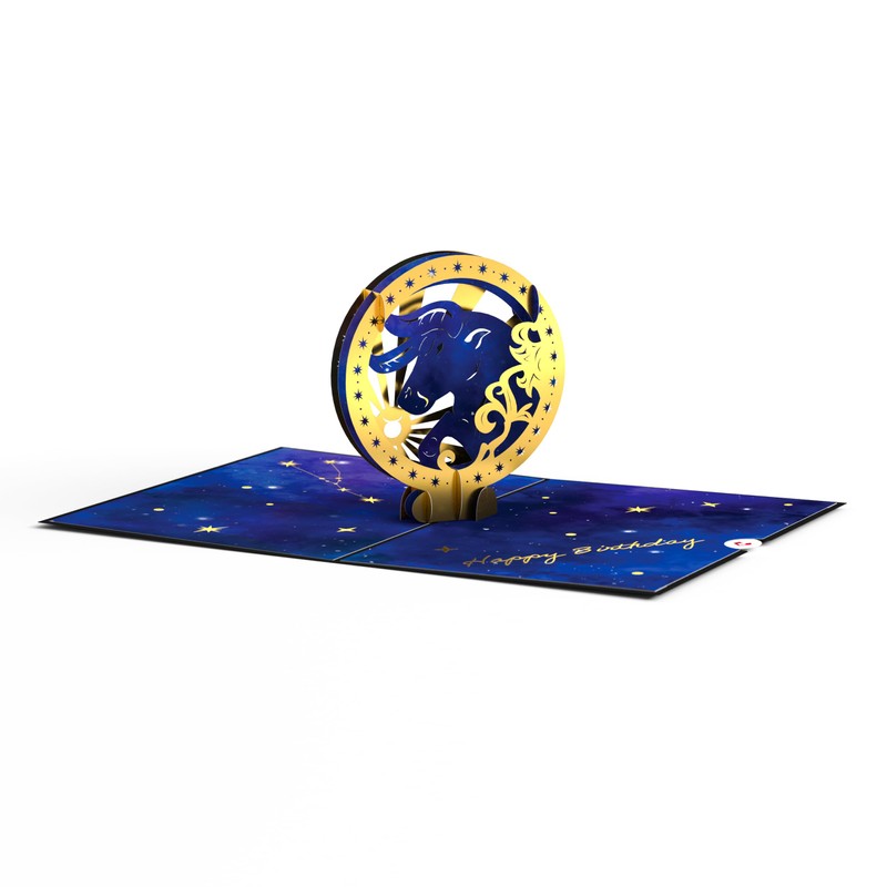 - PRODUCT DETAILS The Zodiac Taurus Star Sign Pop Up Card measures 5" x 7" and comes with a blank premium envelope, ready for your very own personal message.