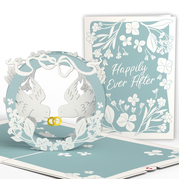 Lovepop® 3D Pop-Up Wedding Card Happily Ever After Light Blue Premium Card for Wedding with Doves and Rings Includes Envelope and Hidden Compartment for Money and Vouchers