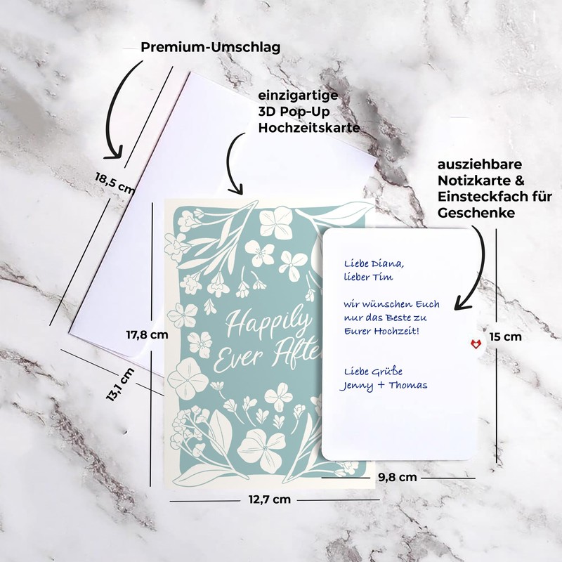 - Size & Package Contents - The Happily Ever After 3D Pop Up Card measures 5" x 7" and comes with a premium quality envelope as well as a pull-out Lovepop note card for you to leave personal congratulations.
