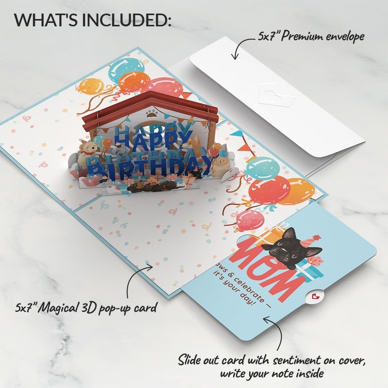 - As Seen on Shark Tank: Create Birthday Magic alongside investor Kevin O'Leary. Whether she’s a pet lover or simply enjoys a touch of humor, this card set combines a festive design with a delightful 3D element, making her birthday truly unforgettable. Perfect for any mom who deserves a cute, joyful celebration with a paw-some twist!
