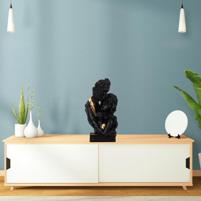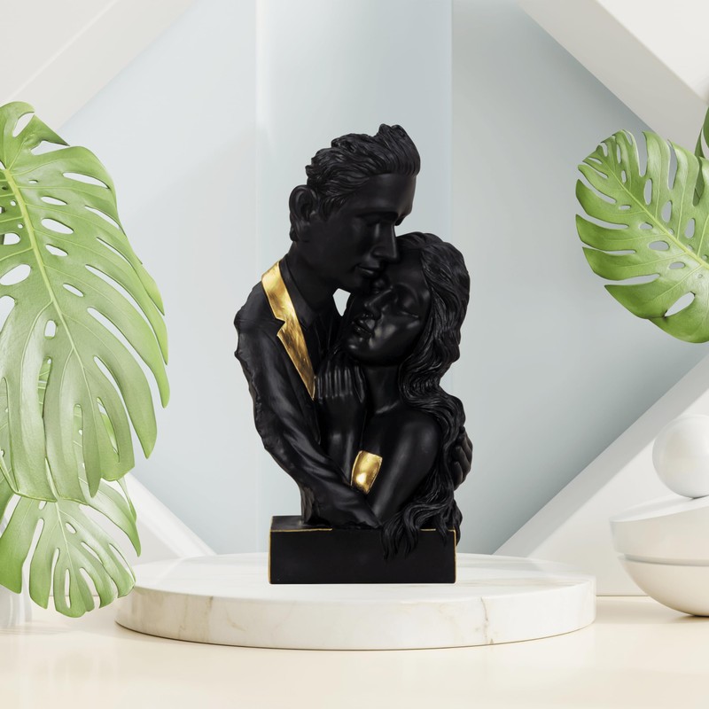 Lovers Sculpture Black with Gold Elements Made of Artificial Stone with Black Base Height 30 cm Width 16 cm