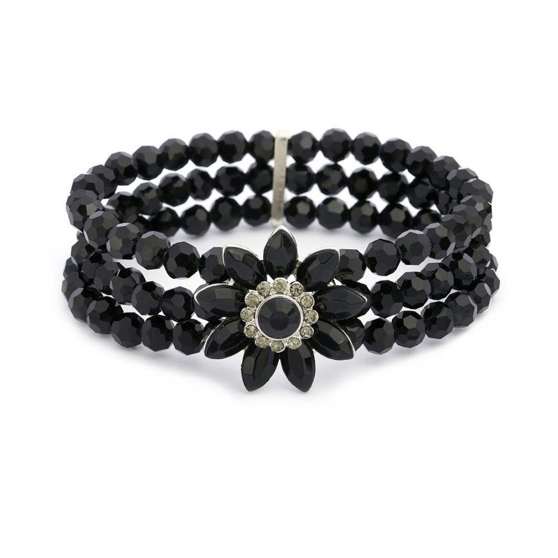 Lovett & Co. Audrey Jet Flower 3 Row Bracelet