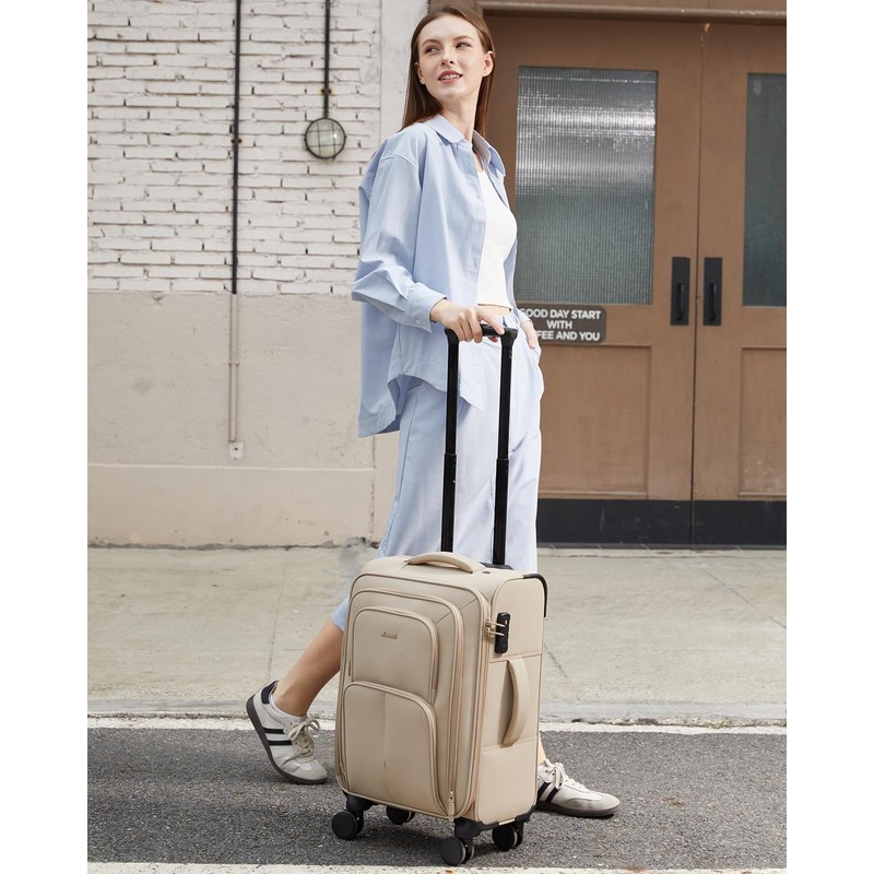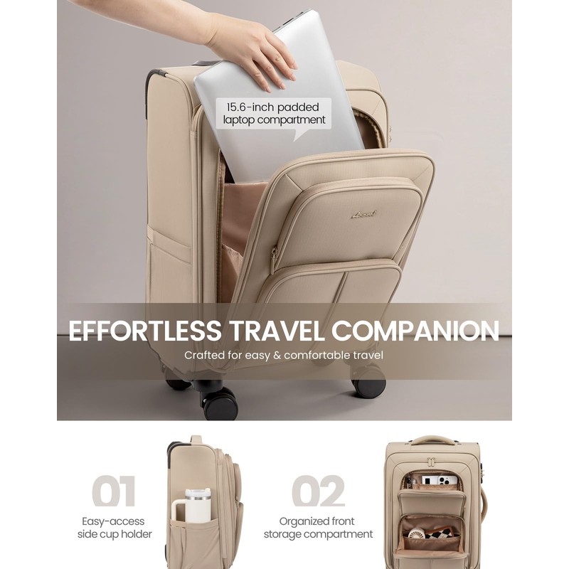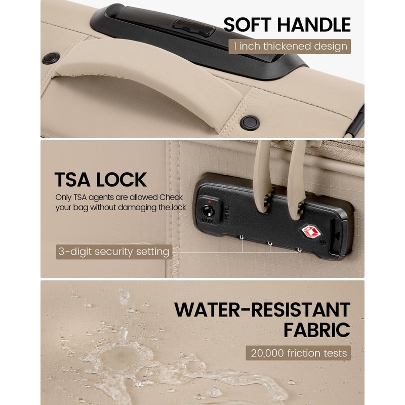 - 【Durable & Smooth-Silent Mobility】Made from premium water- and scratch-resistant polyester, this soft carry-on luggage withstands travel rigors. Its 360° silent spinner wheels feature a precision shaft and thickened design for wear resistance, quiet operation, and superior load capacity.