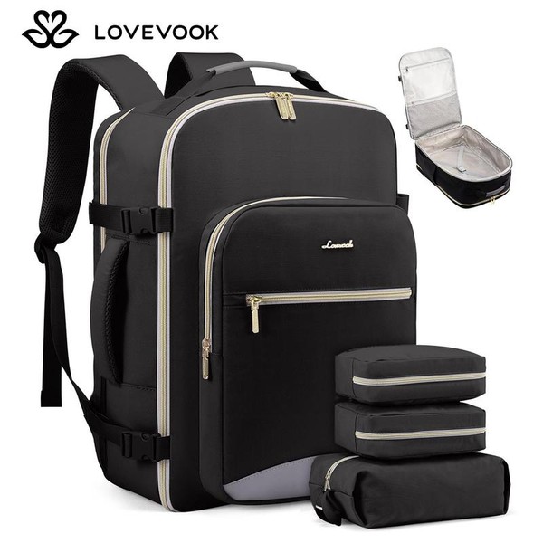 • LOVEVOOK Fall Travel Backpack for Women & Men as Personal Item Flight Approved, Large Capacity Carry on Backpack for Airplanes with 3 Packing Cubes and Laptop Compartment, Waterproof WeekenderBag for Hiking, Overnight