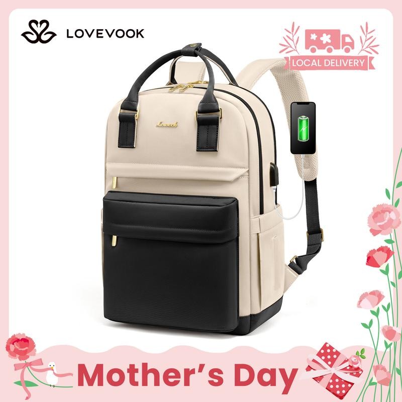 LOVEVOOK Laptop Backpack with USB Port, Backpack Purses for Women, Ideal Travel Backpacks for College, Work, Nursing, Travel, School Backpack, and Personal Item:_Khaki-Coffee-Black_17.3" - 12.8"L * 19"H * 7.7"D