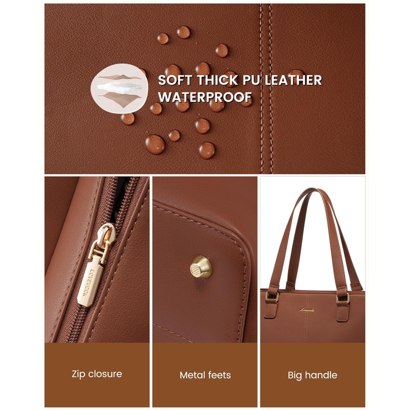 - 【Waterproof & Professional Laptop Bag】This premium laptop bag for women is crafted from waterproof, scratch-resistant PU leather, lined with polyester. Its sleek metal zipper allows for easy access, while the reinforced metal feet protect the bag from wear and tear, keeping it in pristine condition. Perfect for both work and business settings.