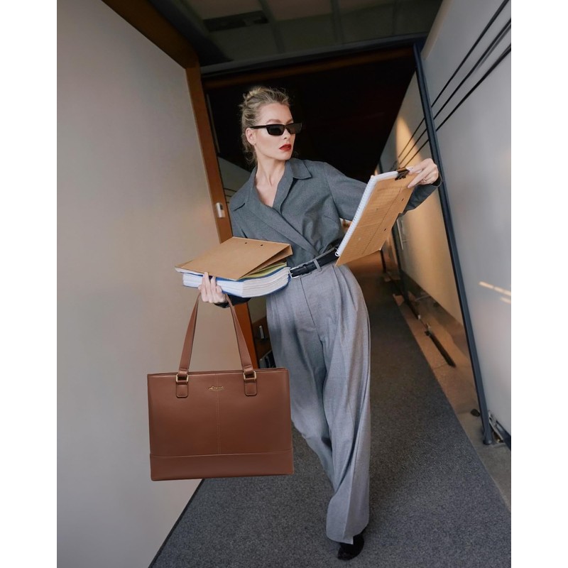 - 【Comfortable & Versatile】With 11-inch handles, this leather tote bag is ideal for hand-carrying or shoulder wear. Its ergonomic design reduces shoulder strain, ensuring all-day comfort. Perfect for business trips, meetings, shopping, or everyday use as a laptop and business work bag, it also functions well as a teacher's tote or nurse's bag.
