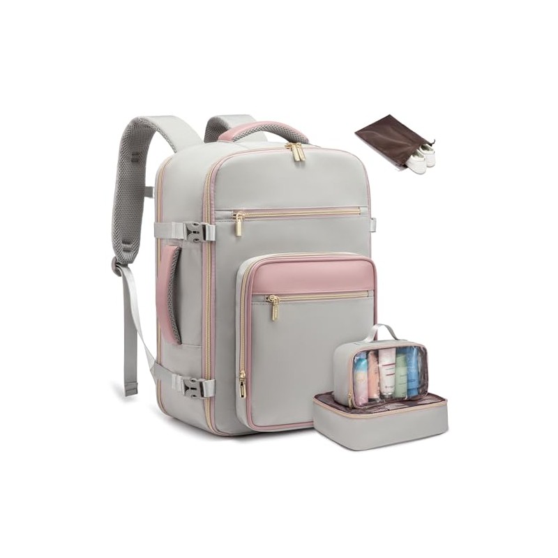 - Packing Cubes & Wet Pockets & Shoe Bag : This travel backpack comes with 3 additional storage pockets, a toiletry bag and a shoe bag and a clothing organizer bag. This ensures your products are clean and tidy.
