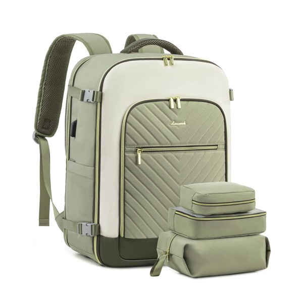 LOVEVOOK Women's Hand Luggage Backpack Large 40L, Light Green Beige