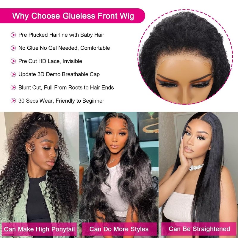 - Wear and Go Glueless Wig: 3 seconds to wear, quick and easy, no skills required, beginner friendly. Glueless wigs human hair pre-plucked pre-cut, seconds wear complete and perfect wig.