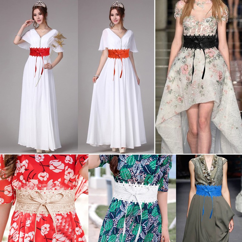 - Lace belt for Women:Obi belt, each end with long PU string to wrapped and tied at the waist,and helps you to cinch your waist for an hourglass shape;Two style lace belt random delivery