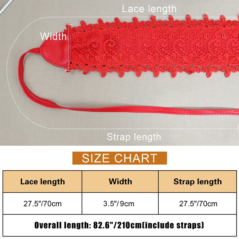 - Material and Size: Lace with soft faux leather straps; length 25.5"(without straps),width 3.5";overall length 80" (include straps)