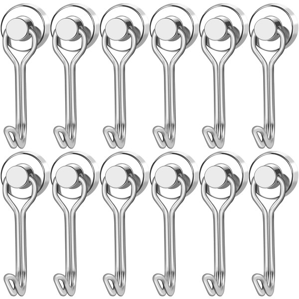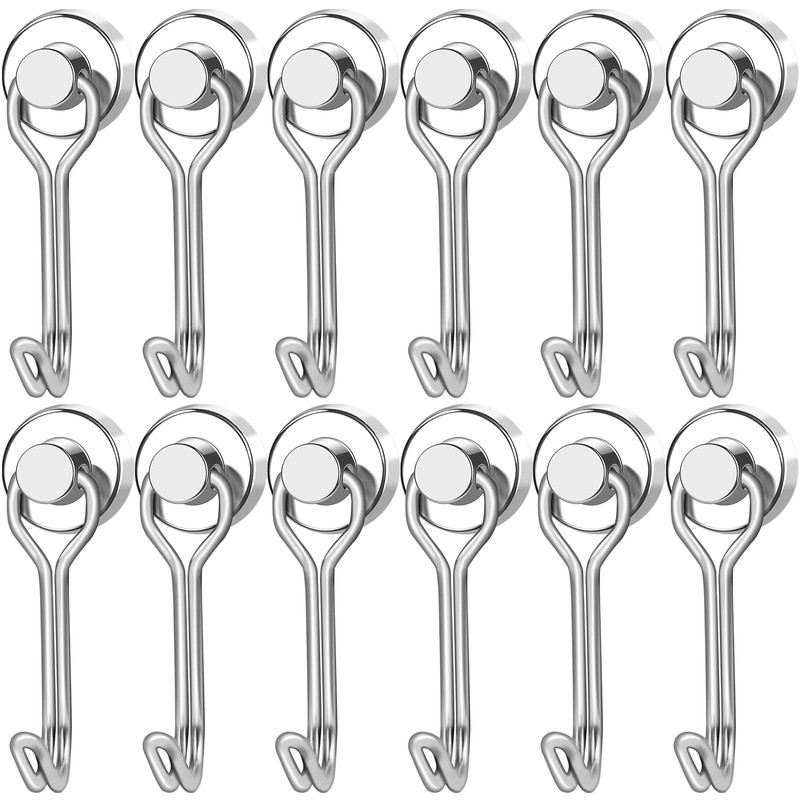 LOVIMAG Magnetic Hooks, 25LBS Swivel Magnet Hooks for Hanging, Magnetic Hooks Cruise Heavy Duty for Hanging, Cruise Cabins, Grill, Refrigerator, Kitchen, Locker, Door,Key and Calendar - Pack of 12