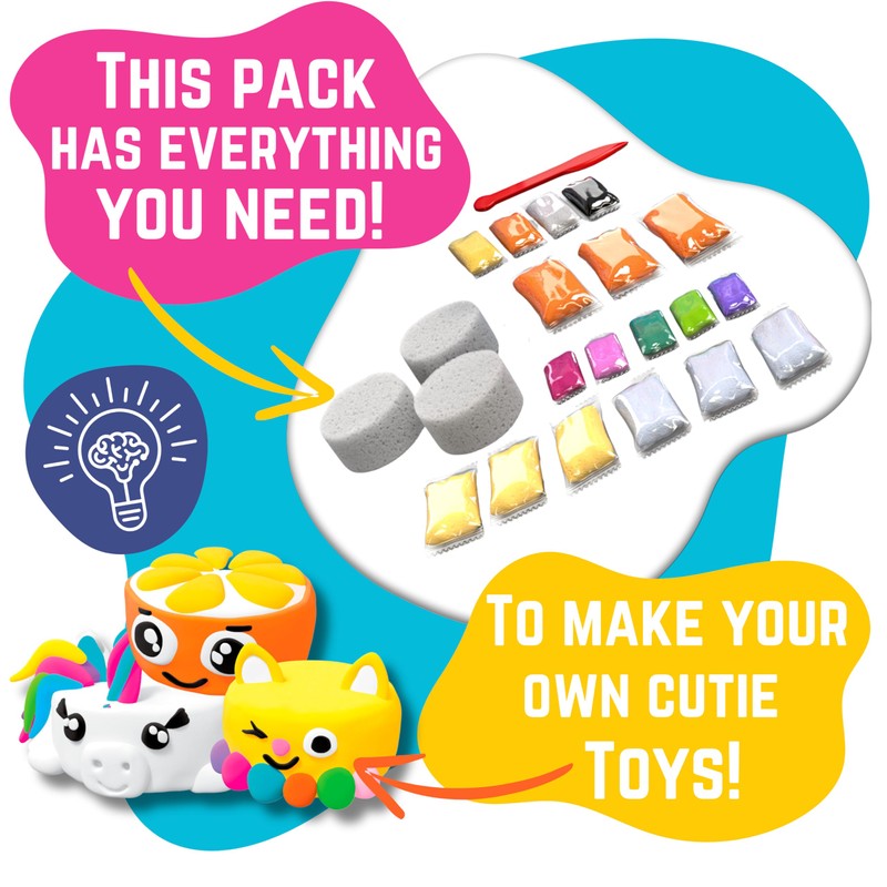 Lovin Create Your Own Squishy Cuties - Air Dry Clay Kit with 18 Modelling Clay Sticks, 3 Sponge Bases, 1 Modelling Tool - Play Dough Arts and Crafts for Kids Age 3 Years Plus