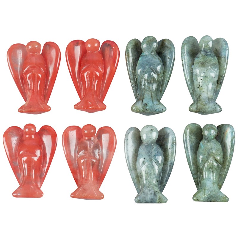 Lovionus89 Mini Crystal Angel, 2 Pieces Bag Carved Gemstone Guardian Figures Healing Statue Home Decor 1.5 Inches, Cherry Quartz + Moonstones