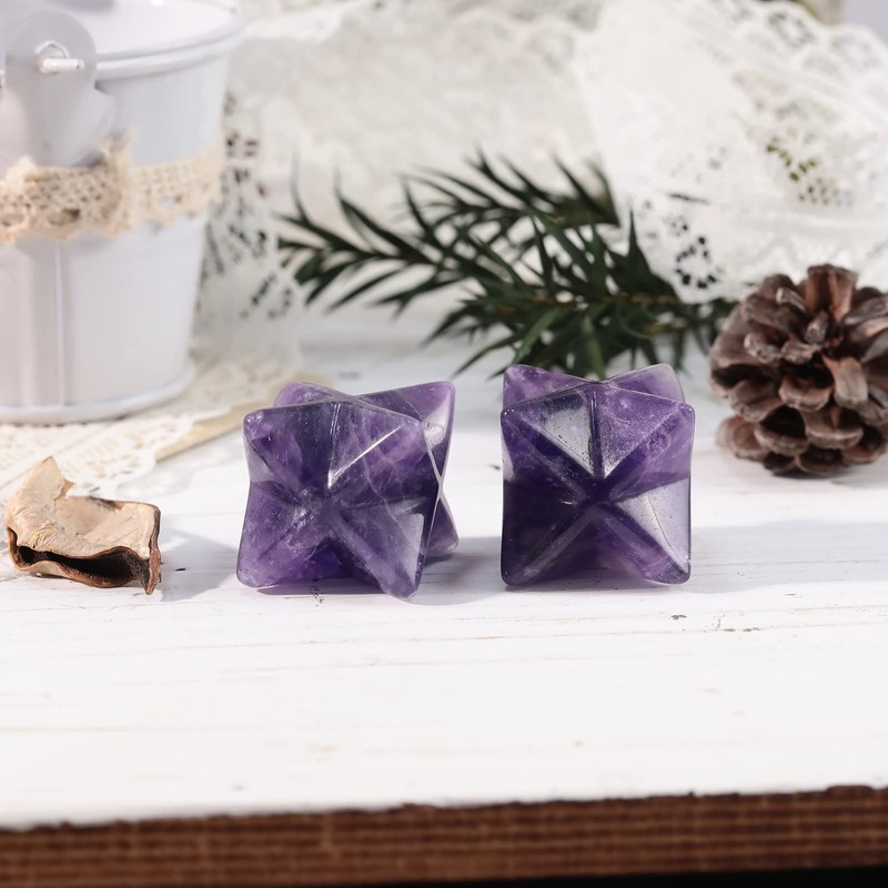 Lovionus89 Natural Amethyst Merkaba Crystal Protection Sacred Meditation Energy Generator Healing Chakra Six Pointed Star 1 Inch