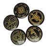 - Natural stones set, 5 pieces Solomon (moon, sun, love, fame, Solomon shield), round shape, polished and smooth, hand engraving gold Solomon symbols.