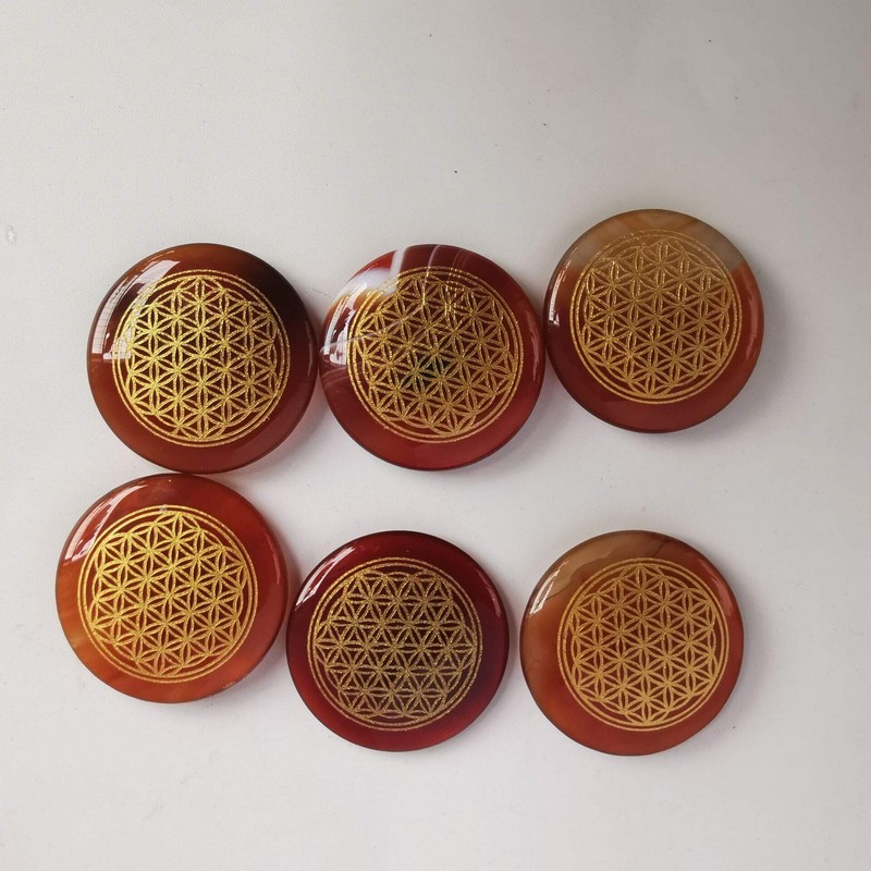 - Flower of life palm stone flat circle shape, polished and smooth, hand engraving gold life of the flower archangel symbols for easy reference during holistic treatment.