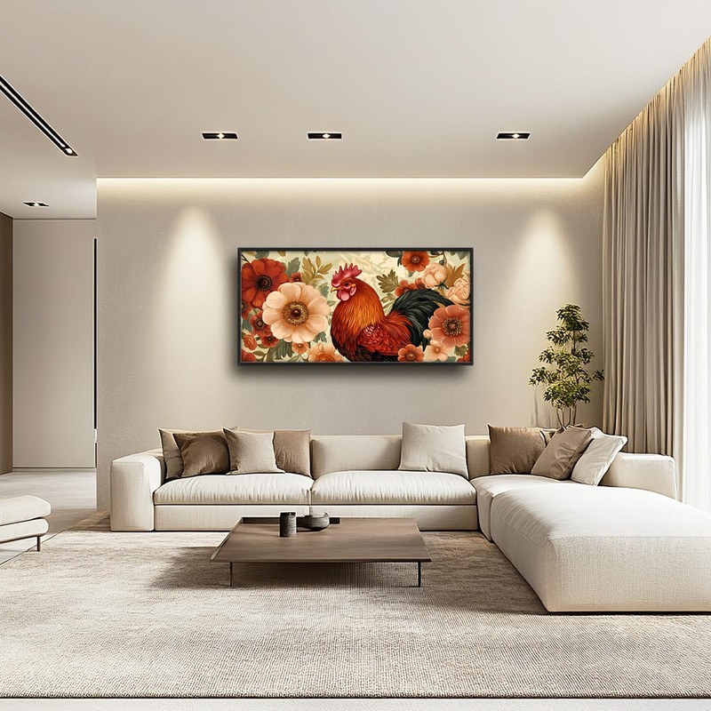 Lovira Farmhouse Rooster Large Wall Art Rustic Country Farm Chicken Floral Canvas Wall Decor Pictures Prints Painting Framed Artwork for Living Room Bedroom Bathroom Kitchen 30"x60"