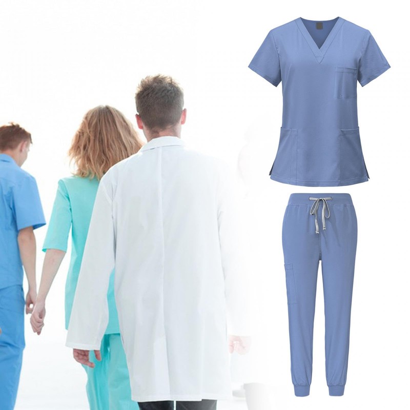 LOVIVER Female Scrub Set Nurse Workwear V Neckline Professional Machine Washable Top and Joggers Pant Work Clothing for Beauty Center, Light Blue, XXL