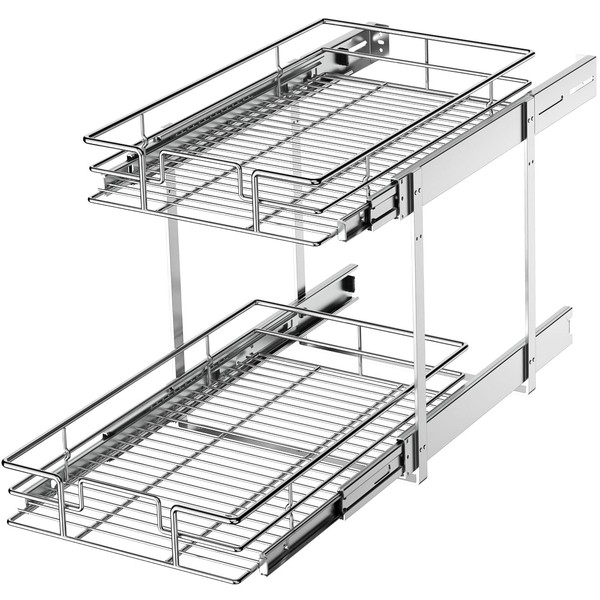 LOVMOR 2 Tier Individual Pull Out Cabinet Organizer 11"W x 21"D, Slide Out Kitchen Cabinet Storage Sliding Shelves