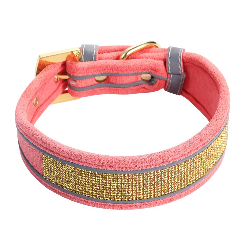 LOVPE Dog Collar,Soft Suede Leather Sparkling Crystal Diamond Adjustable Gold Rhinestone Big Dogs Collar for Medium Large Dogs (L, Pink)