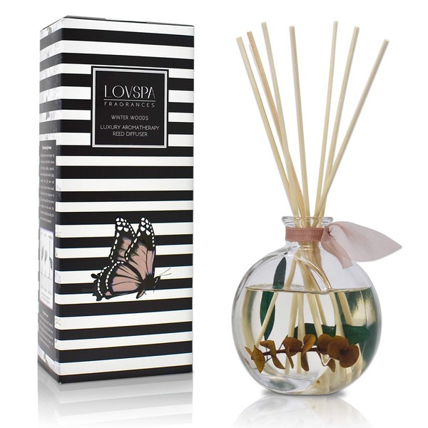 LOVSPA Winter Woods Reed Diffuser and Sticks Gift Set – Fresh Orange, Rosemary, Eucalyptus, Spruce, Lavender, Cedar and Amber – Like a Walk in The Woods – 4.5 Ounces - Made in The USA