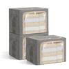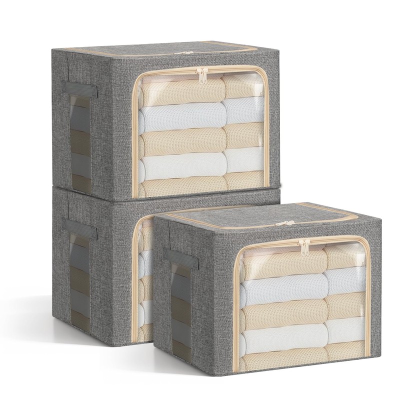 LOVSTORAGE 3-Pack Clothes Storage Bags, Foldable Storage Bins with Metal Frame, Clear Window, Reinforced Handles, Durable Non-Woven Fabric for Clothes, Bedding, Blankets, 40L, Gray