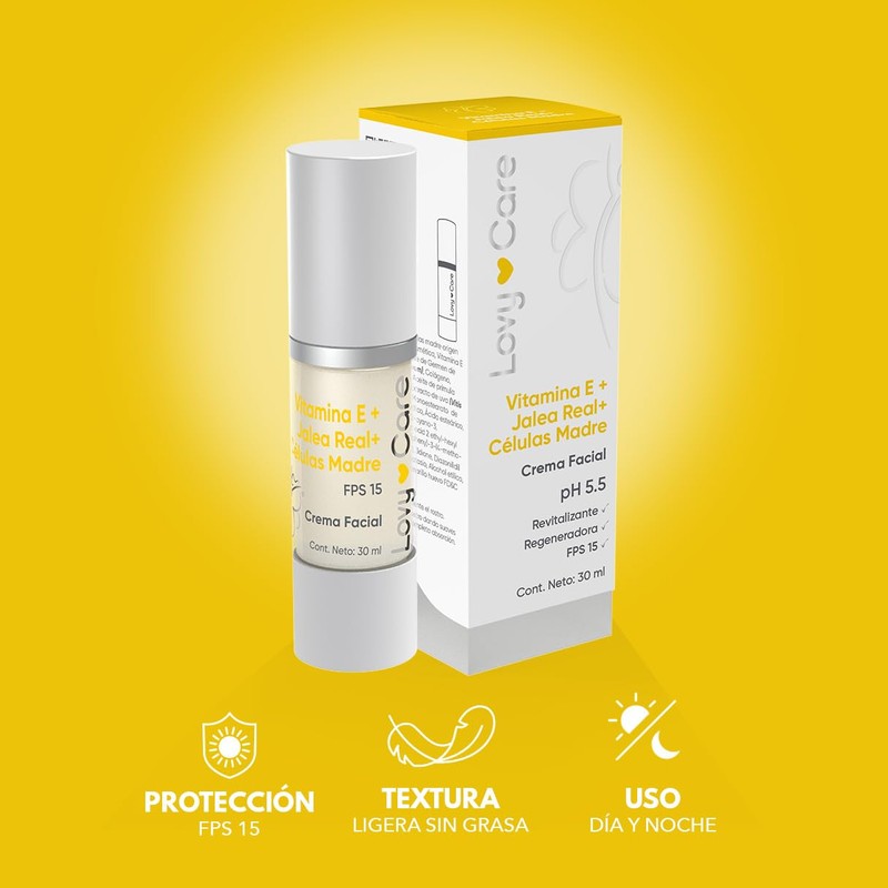 - Dale a tu piel el cuidado que merece con la crema facial de Vitamina E, Jalea Real y Células Madre. Formulada para hidratar la piel, mejorar la elasticidad y combatir los signos del envejecimiento.