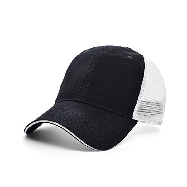 Low Profile Blank Baseball Cap Unisex Women Men Sun Mesh Hat Plain Camo Adjustable Cap (Black + White Grid)