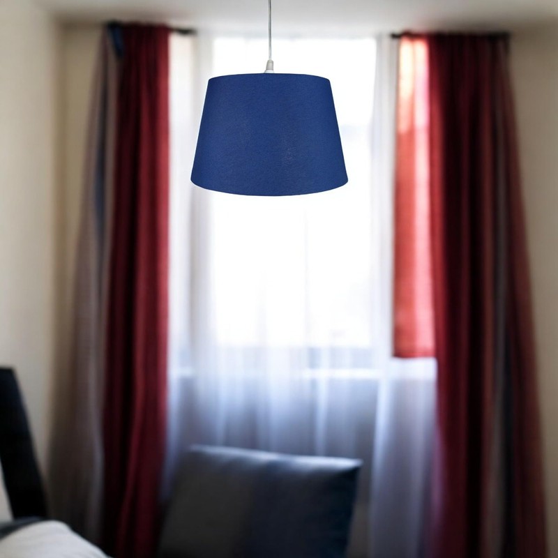 LOXTON LIGHTING Cotton Drum Shade C Navy Blue, 10 inch Easy Fit ES/BC Shade for Living Rooms, Bedrooms, hallways and Kitchens, Pendant Lampshades or Shades for Table Lampss