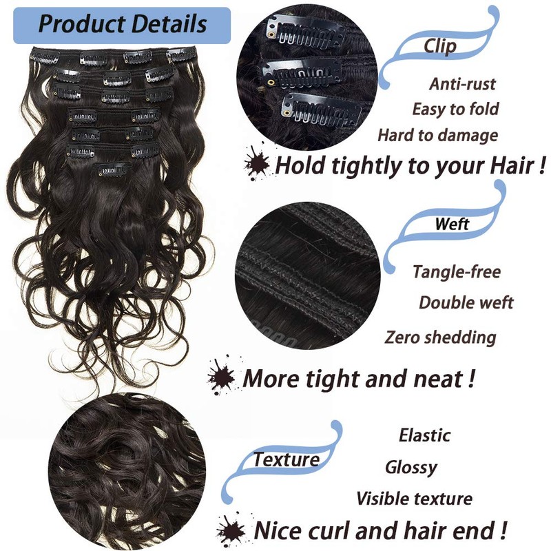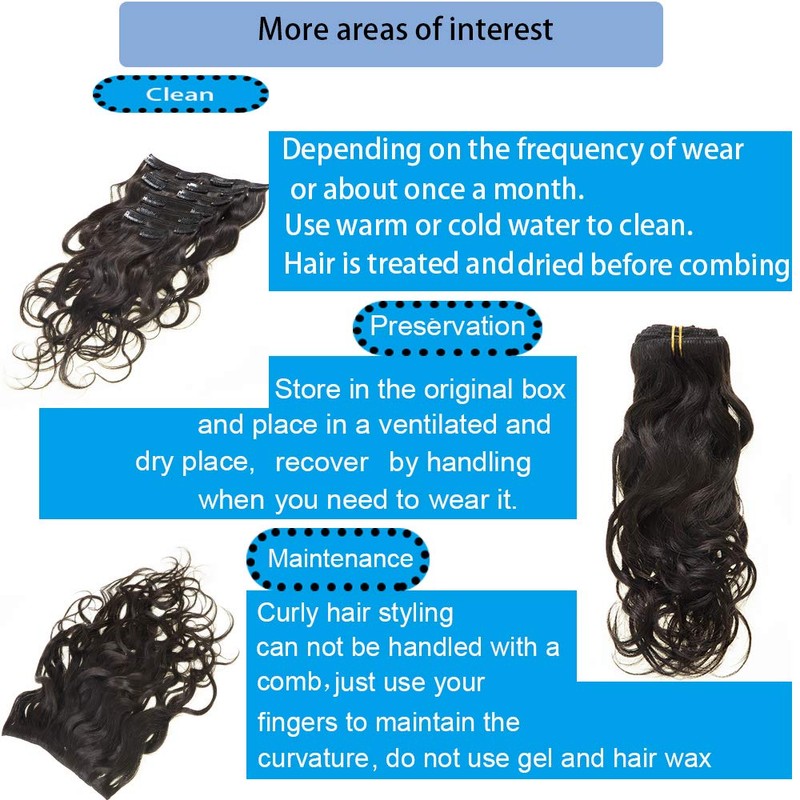 - 【Clamp tightly】:A set contains seven pieces.Total of 17 clips all use professional clips, which will never damage the hair and ensure a firm connection to your hair, at the same time, the clips are securely fastened to the hair extensions and will not fall out.
