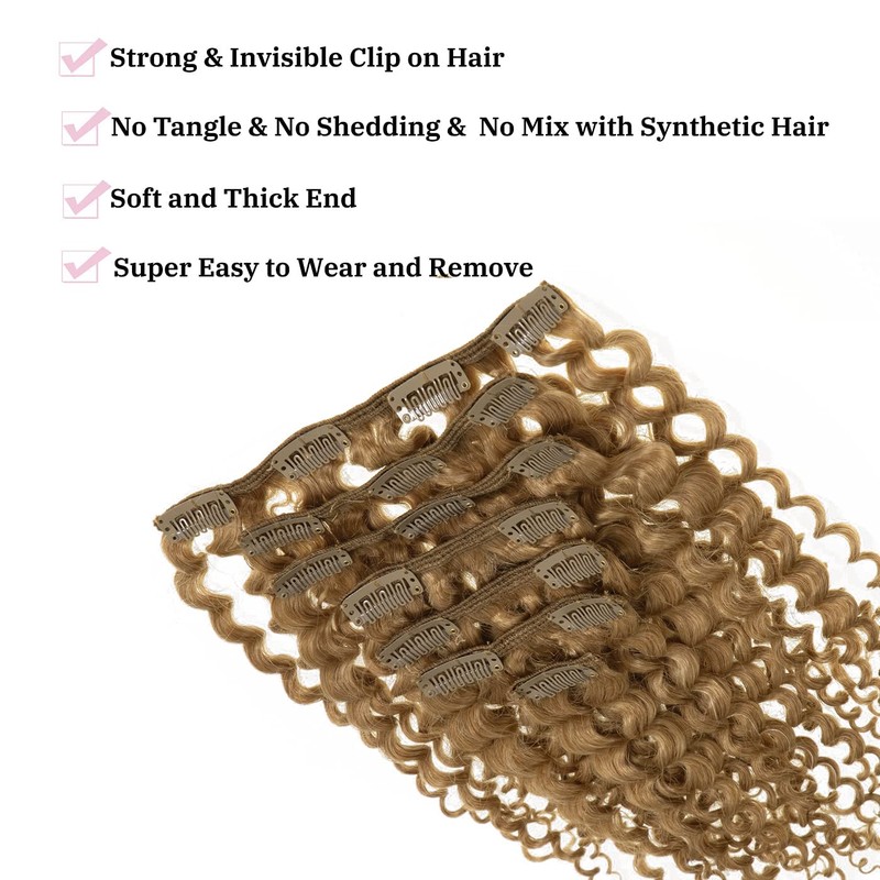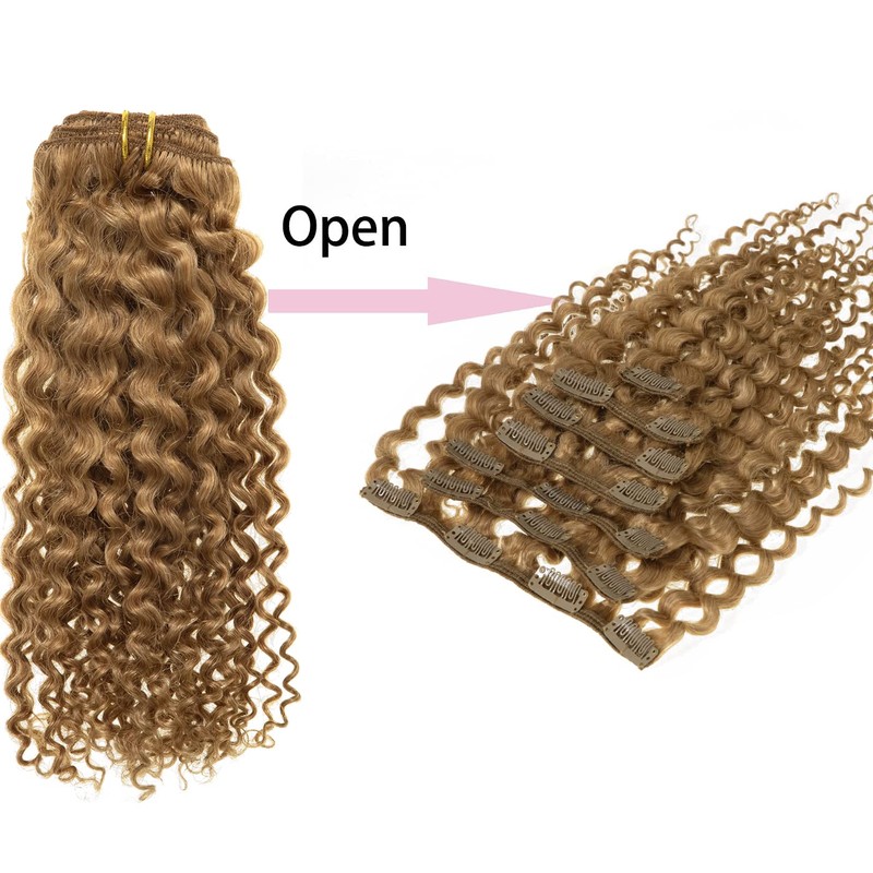 Loxxy Clip in Jerry Curly Human Hair Extensions #27 Blonde Color 20inch Jerry Curly Hair 3B and 3C Real Human Hair Extension Double Weft 120g/set 7Pcs/lot And 17 Clips Per Pack