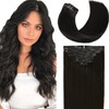 Loxxy Seamless Clip in Hair Extensions Real Human Hair Natural Black #1B 20inch Remy Clip in Human Hair Extensions for Thin Hair Pu Weft Clip on Hair Extensions Natural Hair 150gram 8pcs