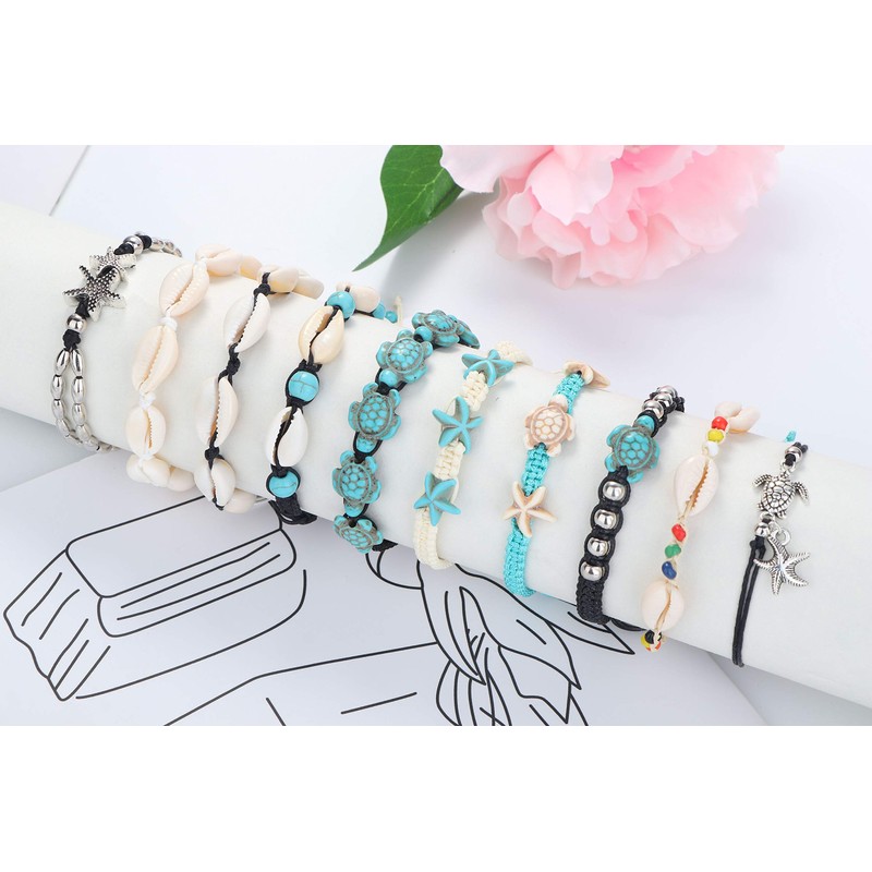 - ANKLET BRACELET SET-One order including 10pcs anklet,shell ankle bracelet,turtle anklet, and braided anklet, etc. You will receive 10 pieces of natural seashell beads anklets in totaldifferent style for your choose, will make you be more attractive and charming, outstanding among people.