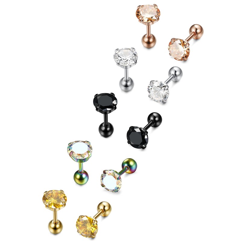 LOYALLOOK 5 Pairs Stainless Steel Cubic Zirconia Stud Earring Ear Piercings For Women 5 Colors 4-8mm